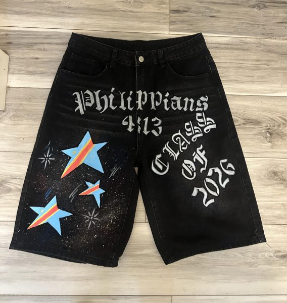 This year, many seniors have taken part in this trend, wearing their jeans to football games and to show school spirit. Seniors like Joyce Kabamba base their jeans around who they are. Kabamba says that his inspiration was “to represent my country while still representing my faith at the same time, together to make art.” Kabamba gives credit to junior Keanu Ramirez, who made the jeans for him.